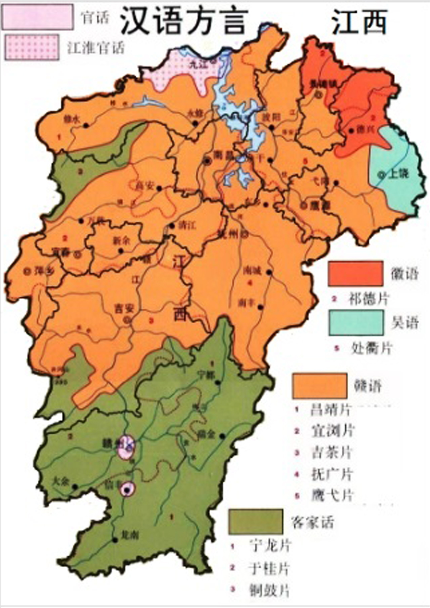 江西省各區方言分布:
